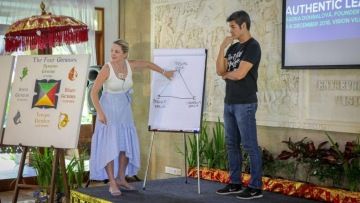 Radka s Rogerem přednáší na Bali, prosinec 2018
