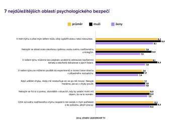Inovace se ale neobejdou bez experimentování, různých úhlů pohledů a učení se z chyb. Znepokojující také je, že téměř ve všech ukazatelích psychologického bezpečí jsou na tom ženy hůře než muži.