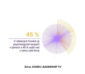 Ve firmách v České republice je ale míra psychologického bezpečí výrazně vyšší v týmech než v celé firmě. Někde je dokonce rozdíl až 45 %. A to může být jeden z klíčových problémů při zavádění inovací.